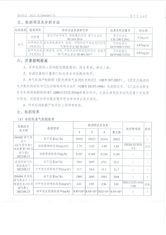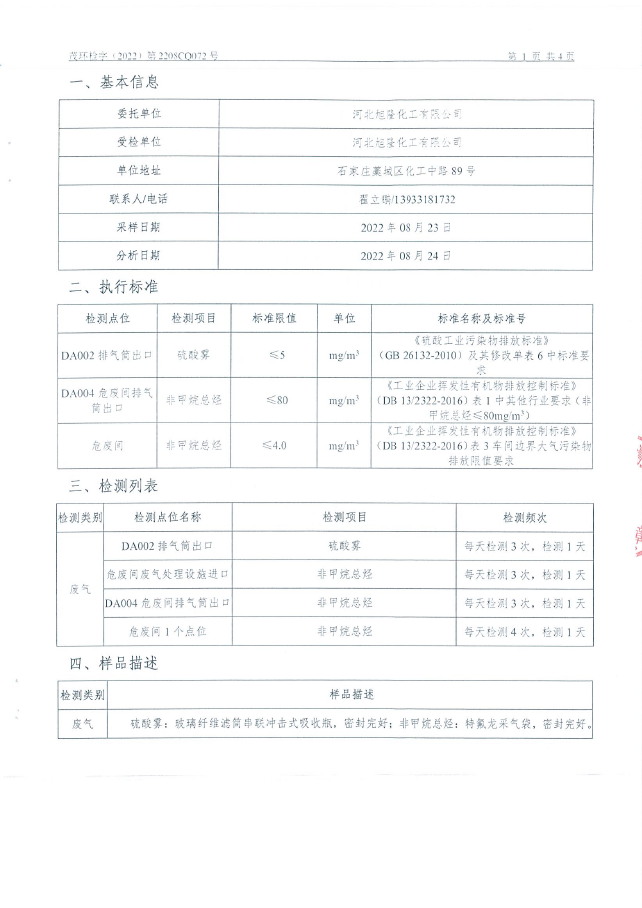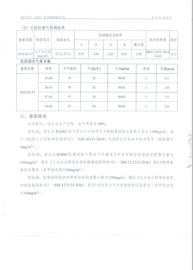 旭隆三季度硫酸二車間監(jiān)測(cè)報(bào)告